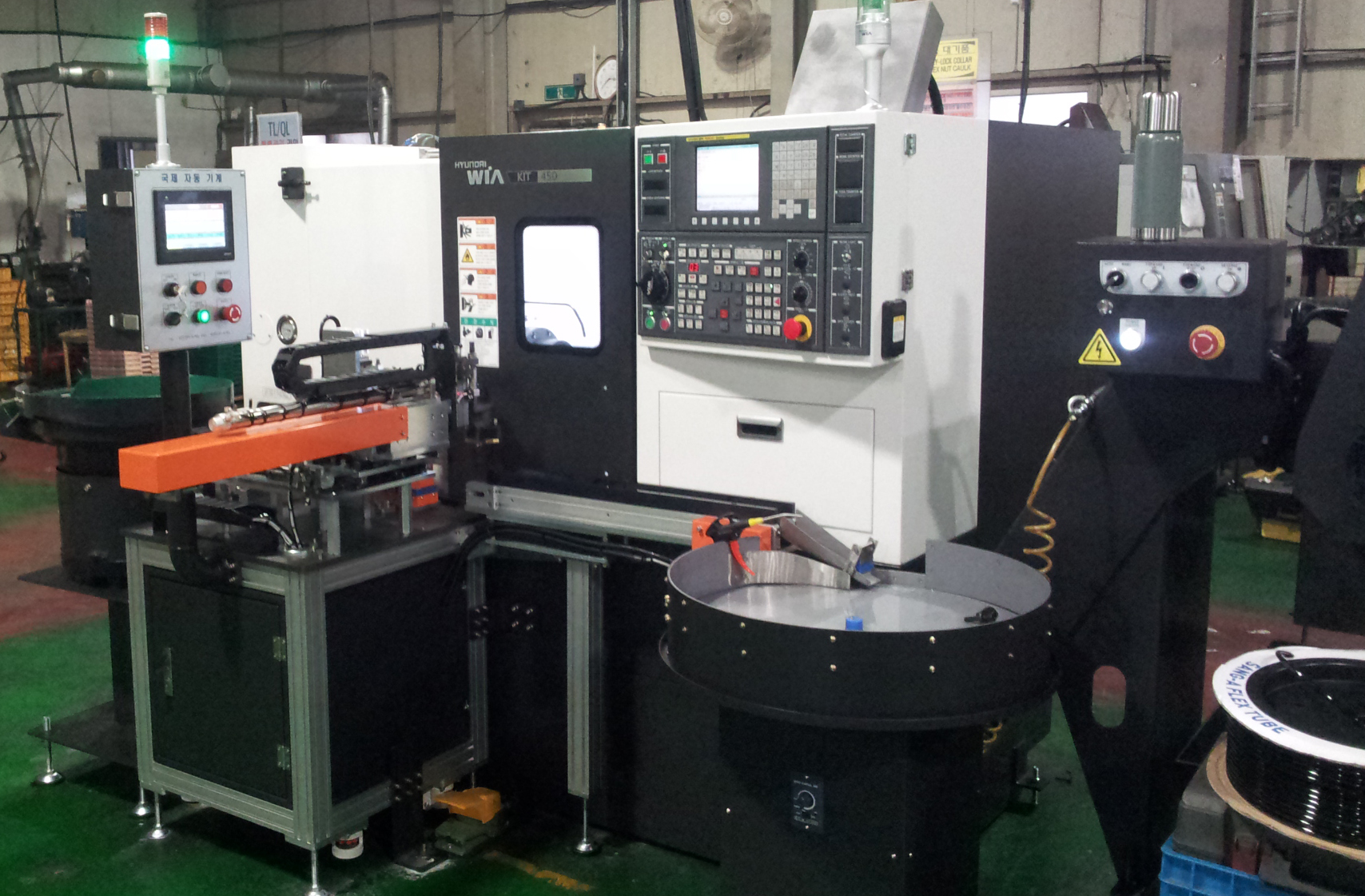 단일공정 자동화 라인으로 파츠피더에 제품을 공급하여 로더가 CNC에 투입과